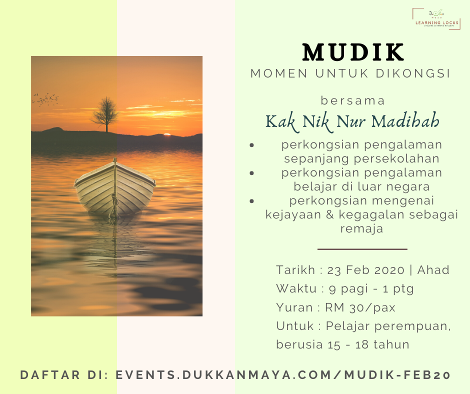 Kami bawakan MUDIK untuk berkongsi panduan dan pengalaman bersama para remaja dalam mendepani alam persekolahan dan bersedia dengan realiti semasa.